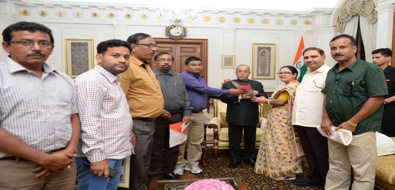 The President of India, Shri Pranab Mukherjee meeting with Smt. Minakshi Dey, Councilor, Haringhata Municipality, Nadia alongwith her family members, at Rashtrapati Bhavan on July 17, 2017.