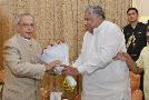 The President of India, Shri Pranab Mukherjee meeting Smt. & Shri N. Dharam Singh, the former Chief Minister of Karnataka, at Rashtrapati Nilayam, Bolarum, in Secunderabad on June 30, 2015.