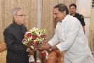 The President of India, Shri Pranab Mukherjee meeting with the former Chief Minister of Andhra Pradesh, Shri N. Kiran Kumar Reddy, at Rashtrapati Nilayam, Bolarum, in Secunderabad on July 02, 2015.