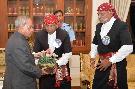 The President of India, Shri Pranab Mukherjee meeting with Shri NU Nachappa Codava, President and others from Codava National Council, Coorg, Karnataka, at Rashtrapati Bhavan, in New Delhi on November 02, 2015.