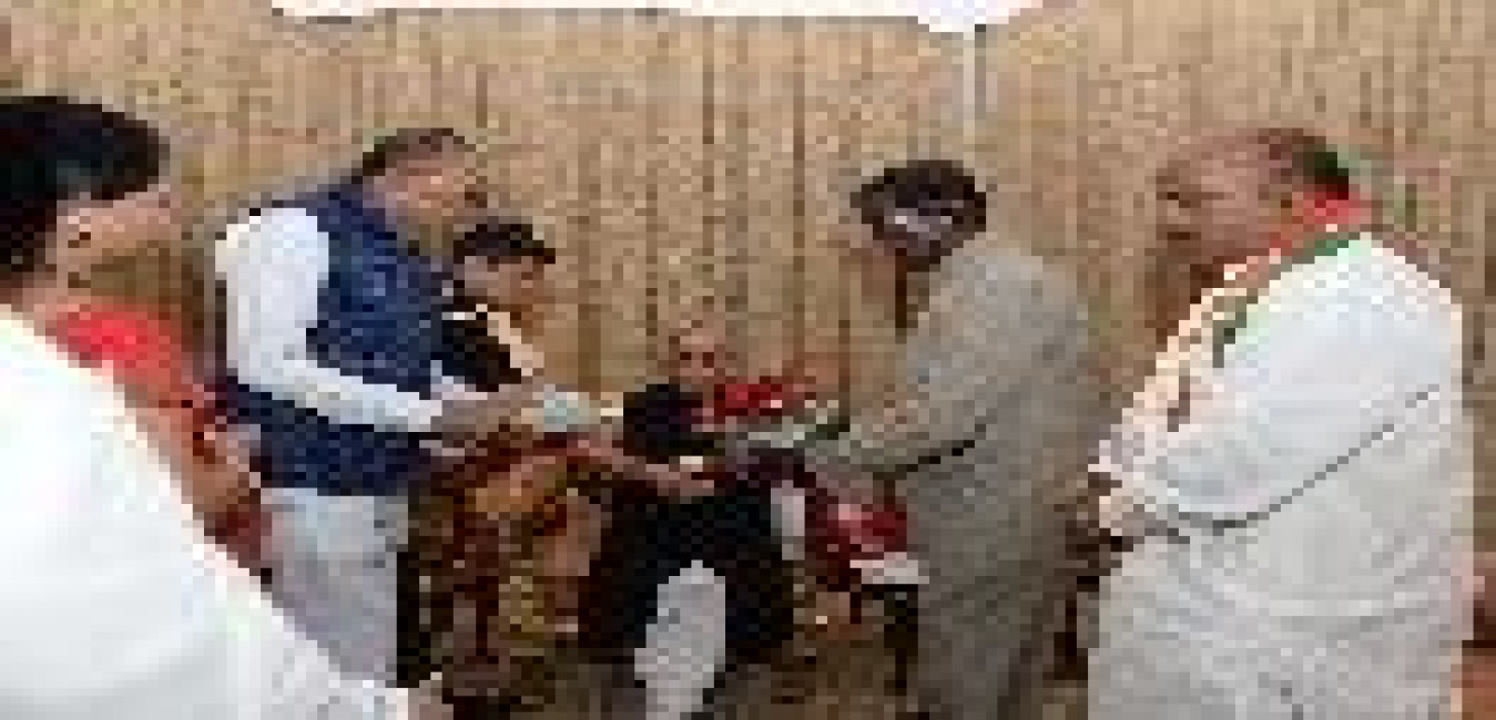 The President of India, Shri Pranab Mukherjee meeting with Shri Nandi Yellaiah, MP (LS) with others, at Rashtrapati Nilayam, Bolarum, in Secunderabad on December 30, 2016.