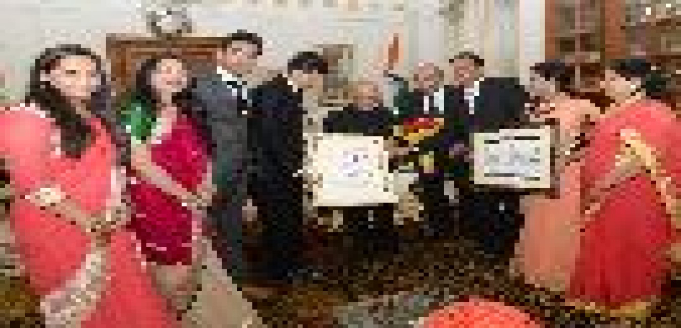 The President of India, Shri Pranab Mukherjee meeting with Shri Narendra Kumar Sand and family from Jaipur, at Rashtrapati Bhavan on June 23, 2017.