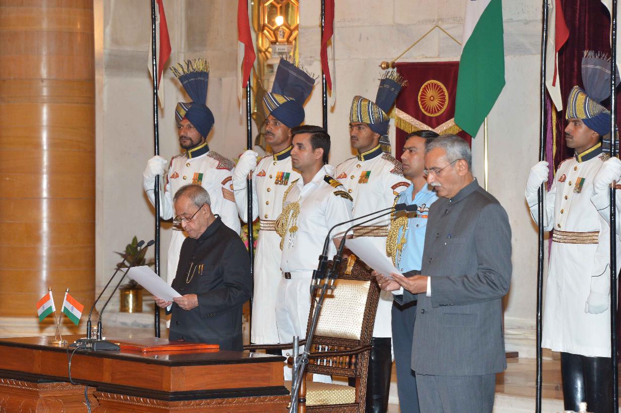 The President of India, Shri Pranab Mukherjee administering the oath of office to Shri K.V. Chowdary as Central Vigilance Commissioner, at a Swearing in Ceremony, at Rashtrapati Bhavan, in New Delhi on June 10, 2015.