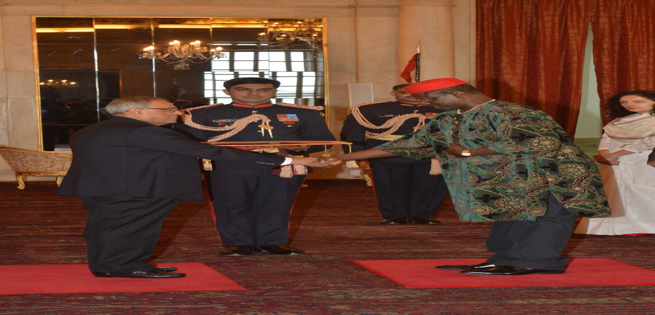 HE Mr Ndubuisi Vitus Amaku, from High of The Federal Republic of Nigeria presenting his credentials to The President of India, Shri Pranab Mukherjee at Rashtrapati Bhavan on Jan 22,2013