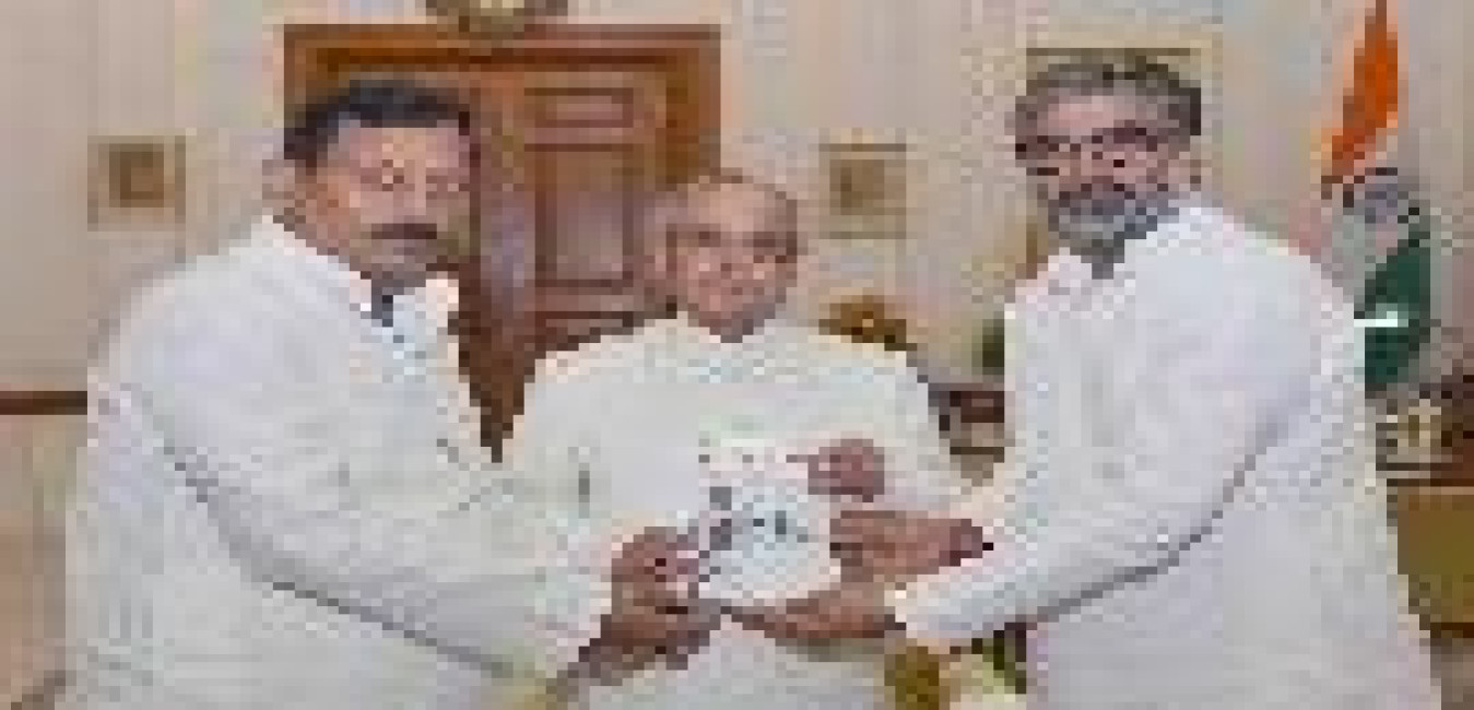 The President of India, Shri Pranab Mukherjee receiving a copy of the book ''Speeches in Parliament by Chandrashekharji'' from Shri Neeraj Shekhar, MP (RS) and Shri Yashvant Singh, MLC, Uttar Pradesh, at Rashtrapati Bhavan on July 28, 2016.