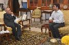 The President of India, Shri Pranab Mukherjee meeting with Shri Neeraj from Sahara Samay, at Rashtrapati Bhavan, in New Delhi on September 19, 2015.