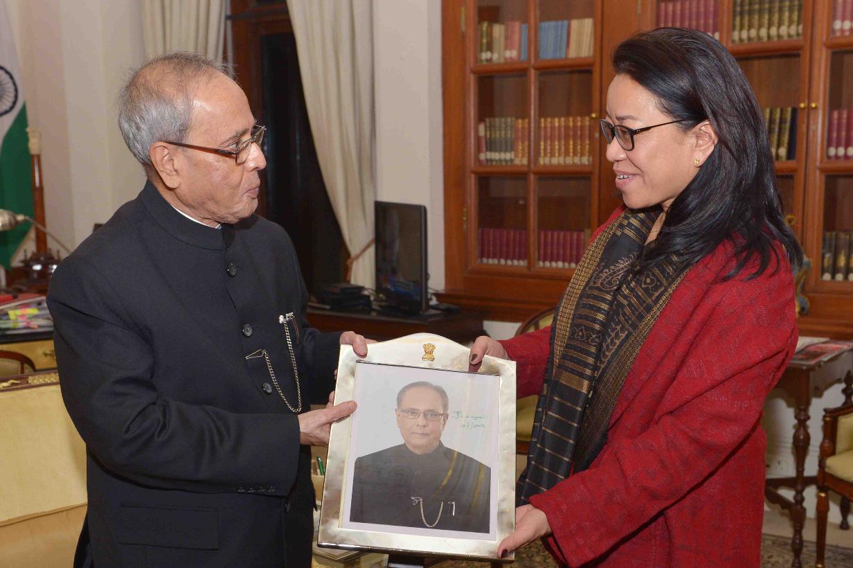 The President of India, Shri Pranab Mukherjee meeting with Ms. Nengcha Lhouvnu, Ambassador-designate of India to Indonesia, at Rashtrapati Bhavan on January 19, 2016.