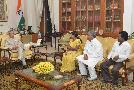 The President of India, Shri Pranab Mukherjee meeting with Shri Nepal Mahato, at Rashtrapati Bhavan, in New Delhi on June 24, 2015.