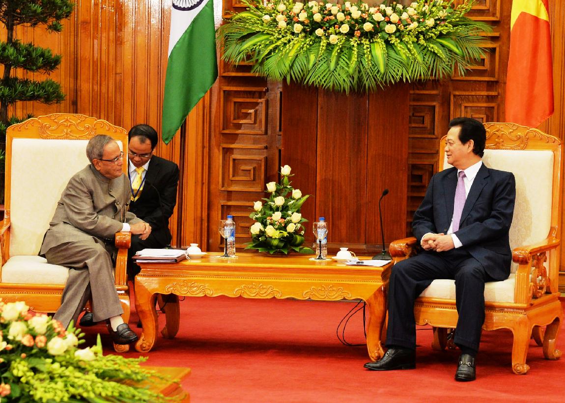 The President of India, Shri Pranab Mukherjee meeting with the Prime Minister of the Socialist Republic of Vietnam, HE Mr Nguyen Tan Dung at Hanoi in Vietnam on Sep 15, 2014