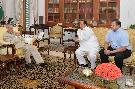 The President of India, Shri Pranab Mukherjee meeting with the Ex-President, Odisha Pradesh Congress Committee, Shri Niranjan Patnaik, at Rashtrapati Bhavan, in New Delhi on August 27, 2015.