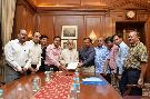 The President of India, Shri Pranab Mukherjee meeting with Shri Nirmal Kumar Jain, Chairman with other office bearers from Dariba Jwellers Association, Delhi, at Rashtrapati Bhavan on April 12, 2016.