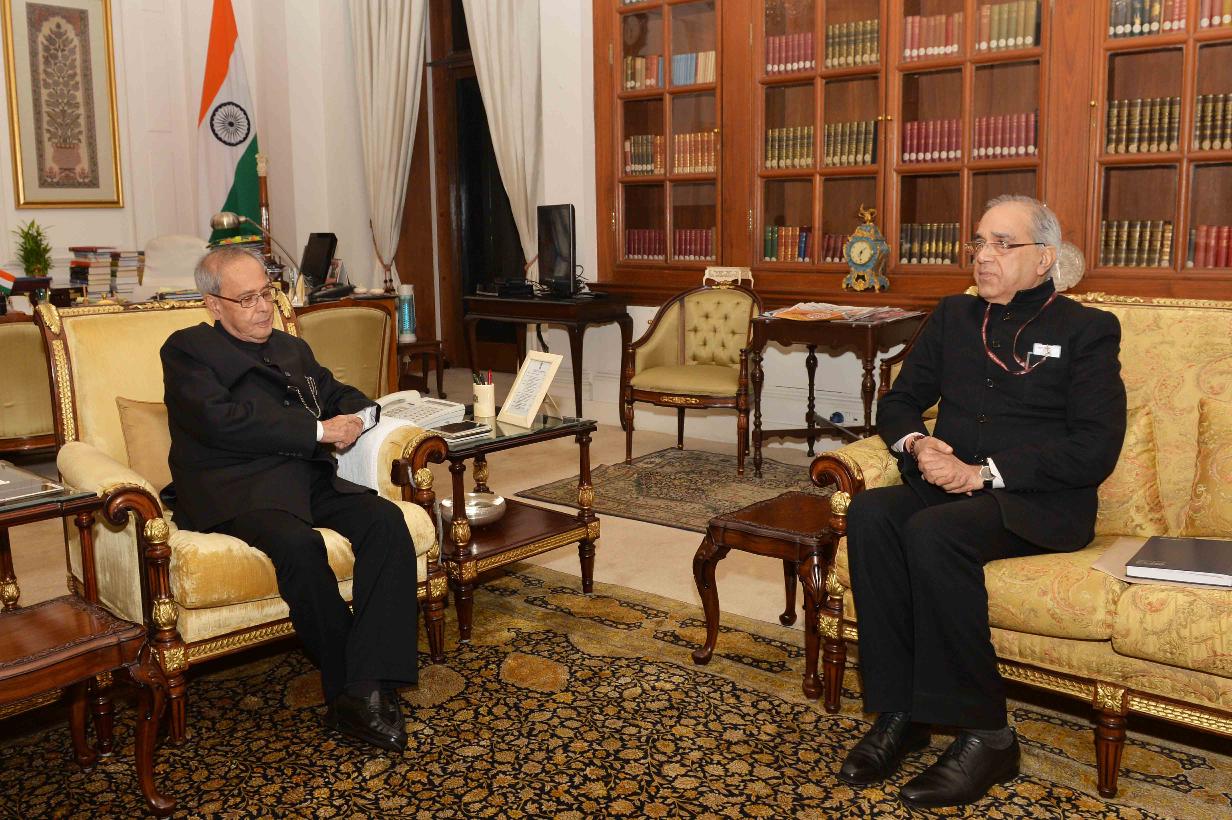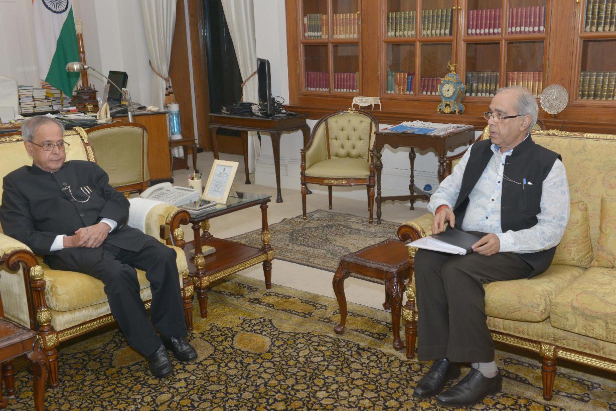 The President of India, Shri Pranab Mukherjee meeting with Shri Nripendra Misra, Principal Secretary to the Prime Minister, at Rashtrapati Bhavan on January 21, 2016.