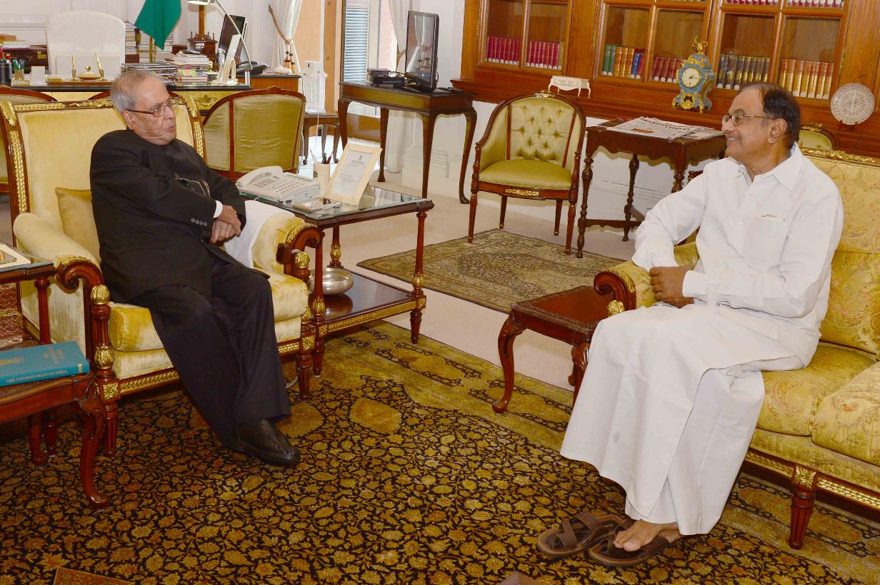 The President of India, Shri Pranab Mukherjee meeting with Shri P. Chidambaram, former Union Minister of Finance, at Rashtrapati Bhavan, in New Delhi on August 24, 2015.