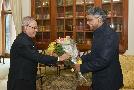 The President of India, Shri Pranab Mukherjee meeting with Shri P.K. Sinha, Cabinet Secretary, on the occasion of New Year, at Rashtrapati Bhavan on January 01, 2016.