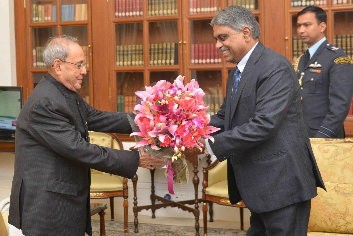 The Cabinet Secretary, Shri P.K. Sinha meeting the President of India, Shri Pranab Mukherjee, at Rashtrapati Bhavan, in New Delhi on June 16, 2015.