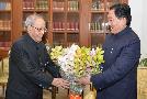 The Chief Minister of Sikkim, Shri Pawan Chamling calling on the President of India, Shri Pranab Mukherjee, at Rashtrapati Bhavan on November 19, 2015.
