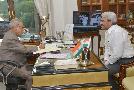 The President of India, Shri Pranab Mukherjee meeting Prof. Pramod K. Misra, Retd. Additional Secretary, Lok Sabha Secretariat, at Rashtrapati Bhavan, in New Delhi on July 13, 2015.