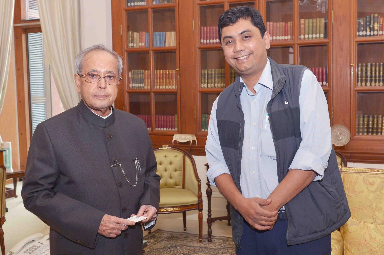 The President of India, Shri Pranab Mukherjee meeting with Shri Pranab Dhal Samanta, National Affairs Editor, The Economic Times, at Rashtrapati Bhavan on November 24, 2015.