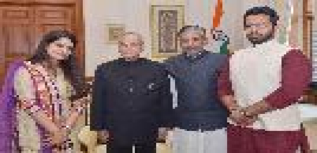 The President of India, Shri Pranab Mukherjee meeting with Capt. Praveen Davar, Member National Commission for Minorities alongwith his son & daughter-in-law, on the occasion of Diwali, at Rashtrapati Bhavan on November 11, 2015.