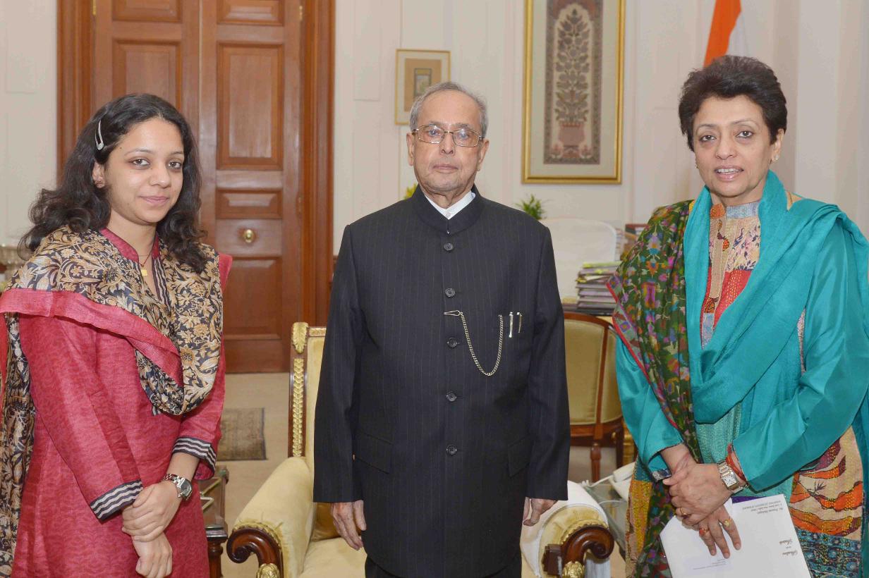 The President of India, Shri Pranab Mukherjee meeting with Smt. Praveen Mahajan, Administrative Member, CAT-Jodhpur Bench, at Rashtrapati Bhavan on February 04, 2016.