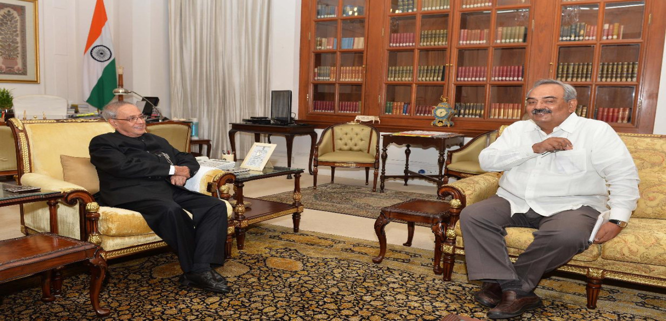 The President of India, Shri Pranab Mukherjee meeting with the Home Secretary, Shri Rajiv Mehrishi, at Rashtrapati Bhavan, in New Delhi on September 16, 2015.