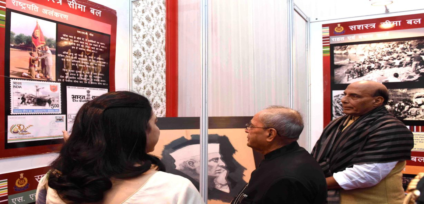 The President of India, Shri Pranab Mukherjee visiting an exhibition, at the Reception, organised on the occasion of 53rd Anniversary of Sashastra Seema Bal (SSB), in New Delhi on December 21, 2016.