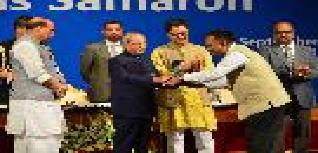 The President of India, Shri Pranab Mukherjee attending Hindi Divas Samaroh and presenting the Rajbhasha award instituted by the Rajbhasha Vibhag of Ministry of Home Affairs, at Rashtrapati Bhavan Cultural Centre Auditorium on September 14, 2016.