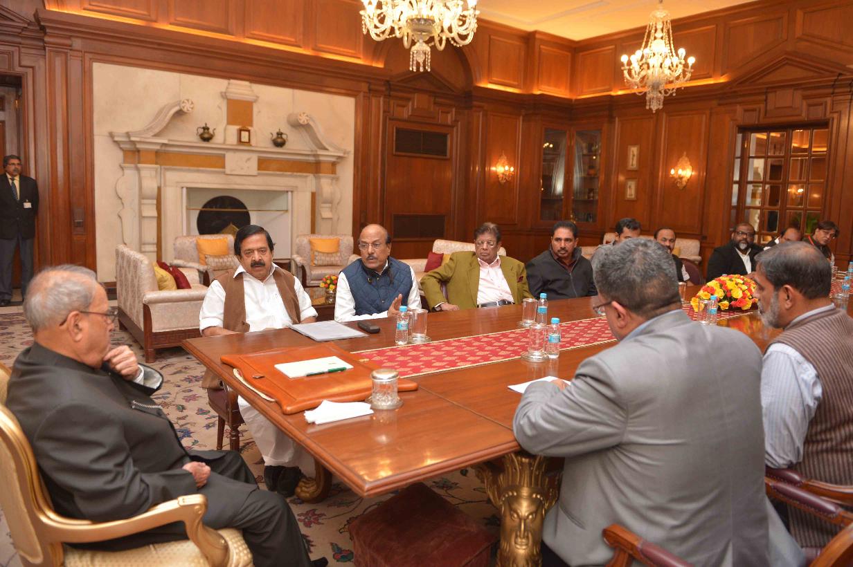 The President of India, Shri Pranab Mukherjee meeting with a delegation of MPs, MLAs & Leaders from Kerala Led by Shri Ramesh Chennithala, Leader of Opposition, Kerala Legislative Assembly, at Rashtrapati Bhavan on December 13, 2016.