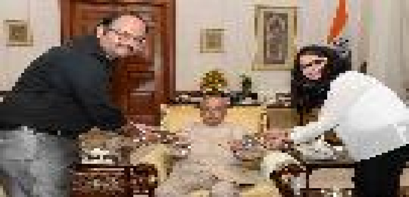 The President of India, Shri Pranab Mukherjee meeting with Ms. Reena Mukherjee from Satyom Entertainment and Shri Shaon Basu from Mumbai and received a DVD of the film ''Aradhangini Ek Ardh Satya'', at Rashtrapati Bhavan on July 29, 2016.