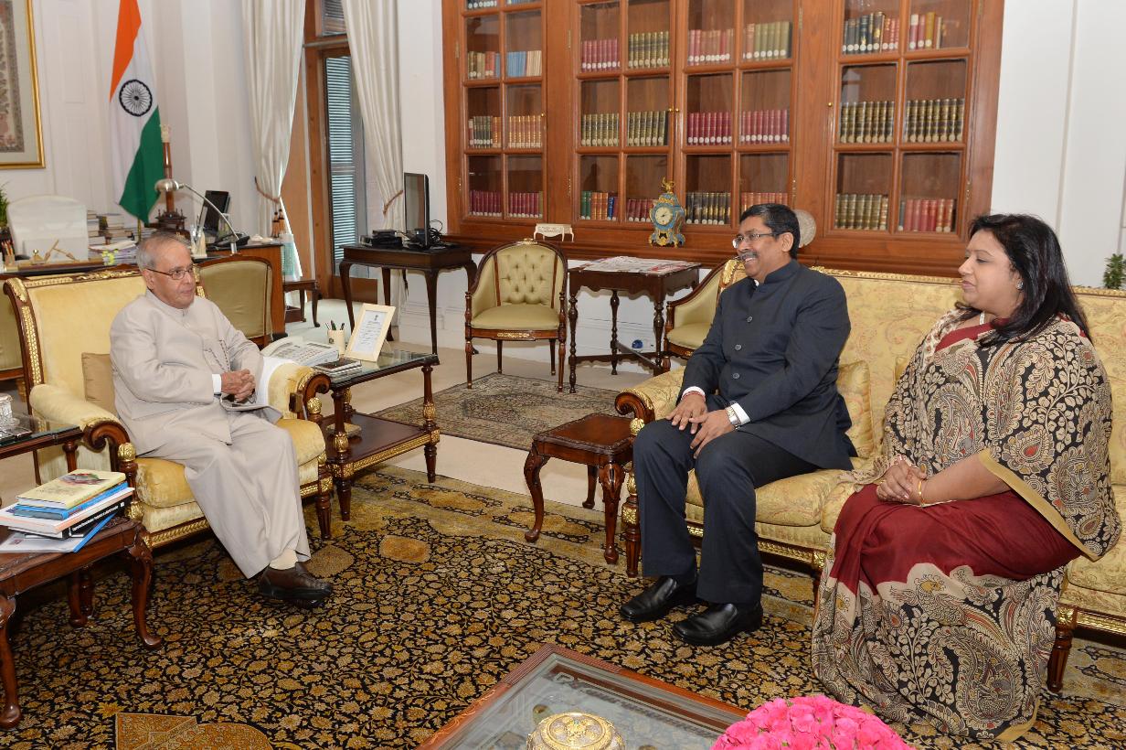 The President of India, Shri Pranab Mukherjee meeting with Smt. & Shri S. Bhattacharya, Chairman, Coal India Ltd., at Rashtrapati Bhavan, in New Delhi on August 31, 2015.