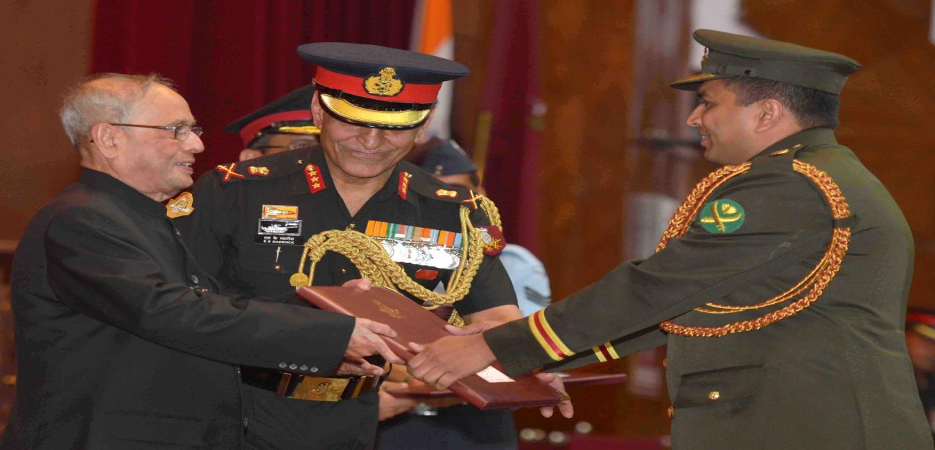 The President of India, Shri Pranab Mukherjee presenting the Medals to award winners and Parchments to the Foreign Officers, at the Convocation of the 71st Staff Course of Defence Services Staff College (DSSC), at Wellington, Nilgiris in Tamil Nadu on April 15, 2016.