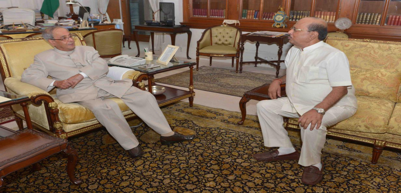 The President of India, Shri Pranab Mukherjee meeting with Shri Sadhan Pande, Minister-in-Charge, Consumer Affair Department and Self Help Group & Self Employment Department, Govt. of West Bengal, at Rashtrapati Bhavan on August 04, 2016.