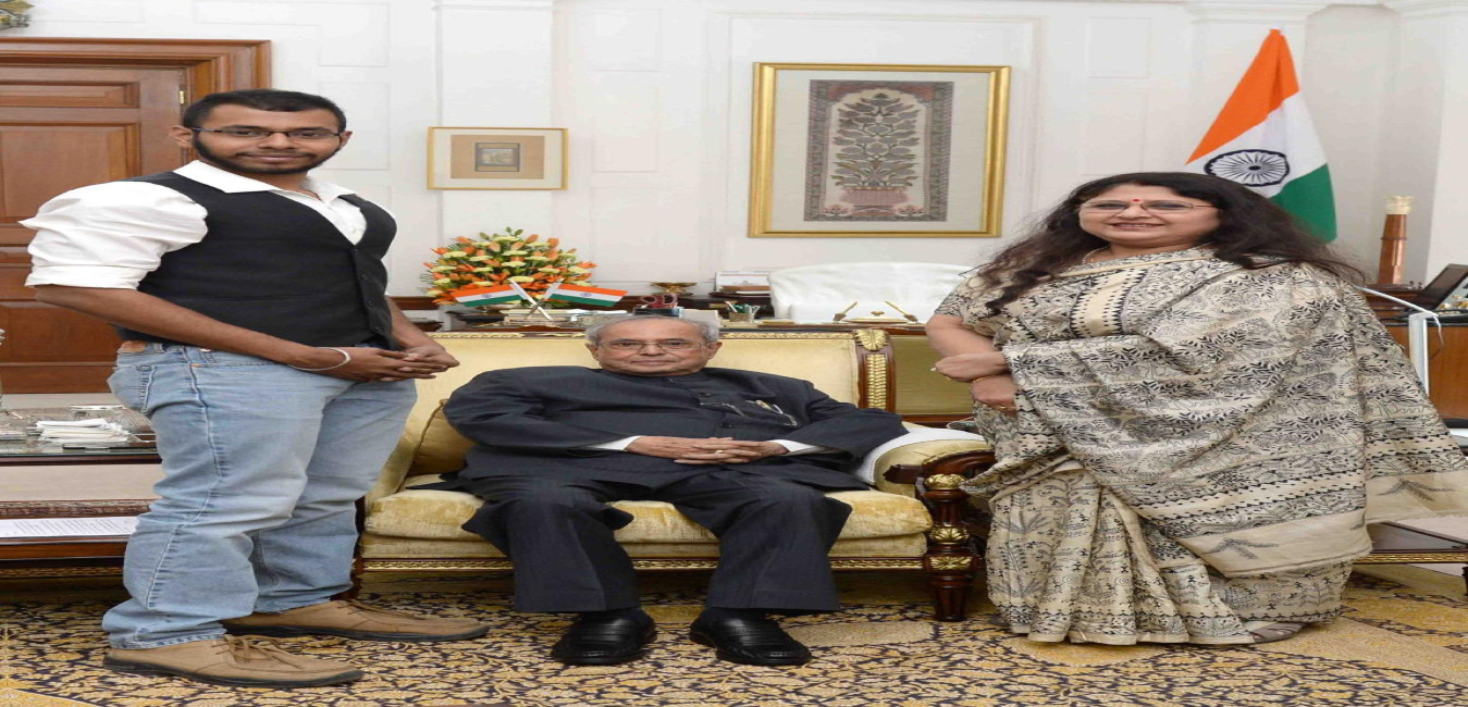The President of India, Shri Pranab Mukherjee meeting with Ms. Sangeeta Ghosh from Kolkata, at Rashtrapati Bhavan on September 30, 2016.