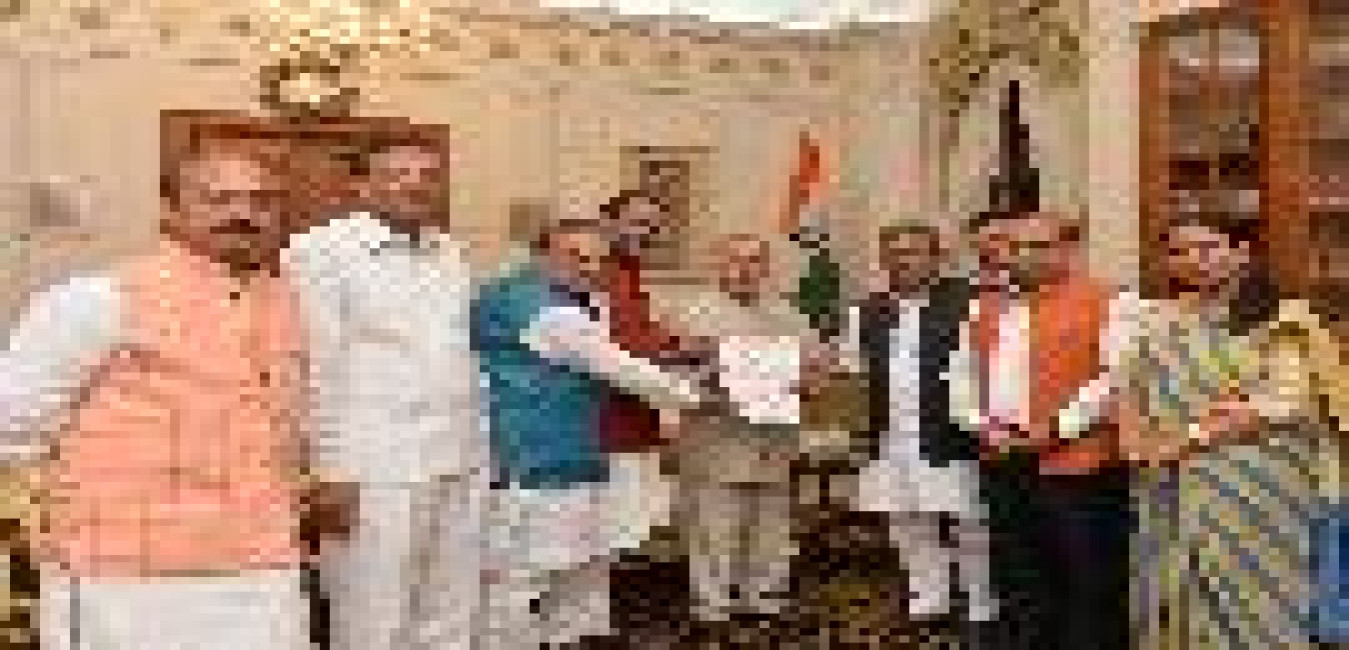 The President of India, Shri Pranab Mukherjee meeting with Shri Satish Upadhyay, State President with others from Bharatiya Janata party, Delhi Pradesh, at Rashtrapati Bhavan on March 15, 2016.