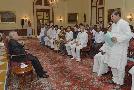 The former Union Minister, Shri V. Narayanasamy alongwith a delegation of Congress MLAs and senior leaders from Tripura Pradesh Congress Committee meeting with the President of India, Shri Pranab Mukherjee, at Rashtrapati Bhavan, in New Delhi on June 16, 2015.