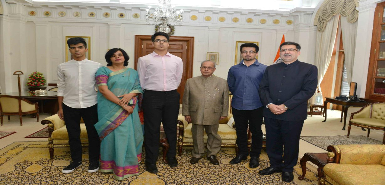 The President of India, Shri Pranab Mukherjee meeting with Smt. & Shri Siddharth Sharma, IFA, Rashtrapati Bhavan alongwith their sons, at Rashtrapati Bhavan on May 20, 2017.