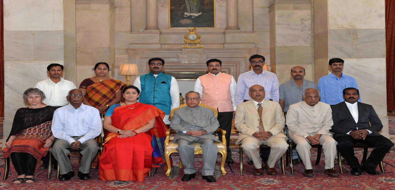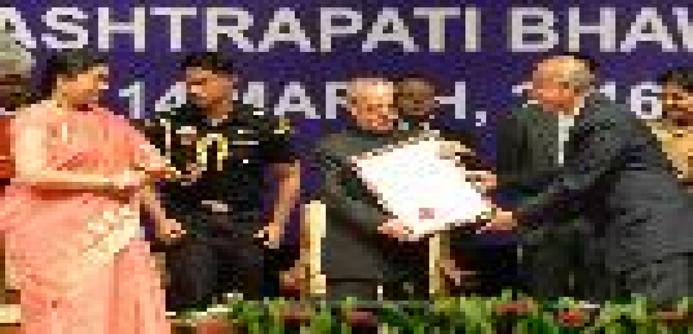 The President of India, Shri Pranab Mukherjee presenting the Visitor s Award - 2016, at Rashtrapati Bhavan Auditorium on March 14, 2016.
