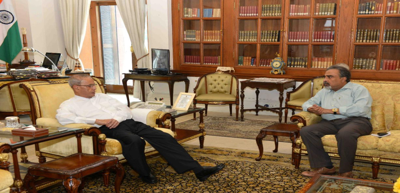 The President of India, Shri Pranab Mukherjee meeting with Shri Suman Chattopadhyay, Editor, Aiesomoy, Kolkata, at Rashtrapati Bhavan on March 10, 2016.