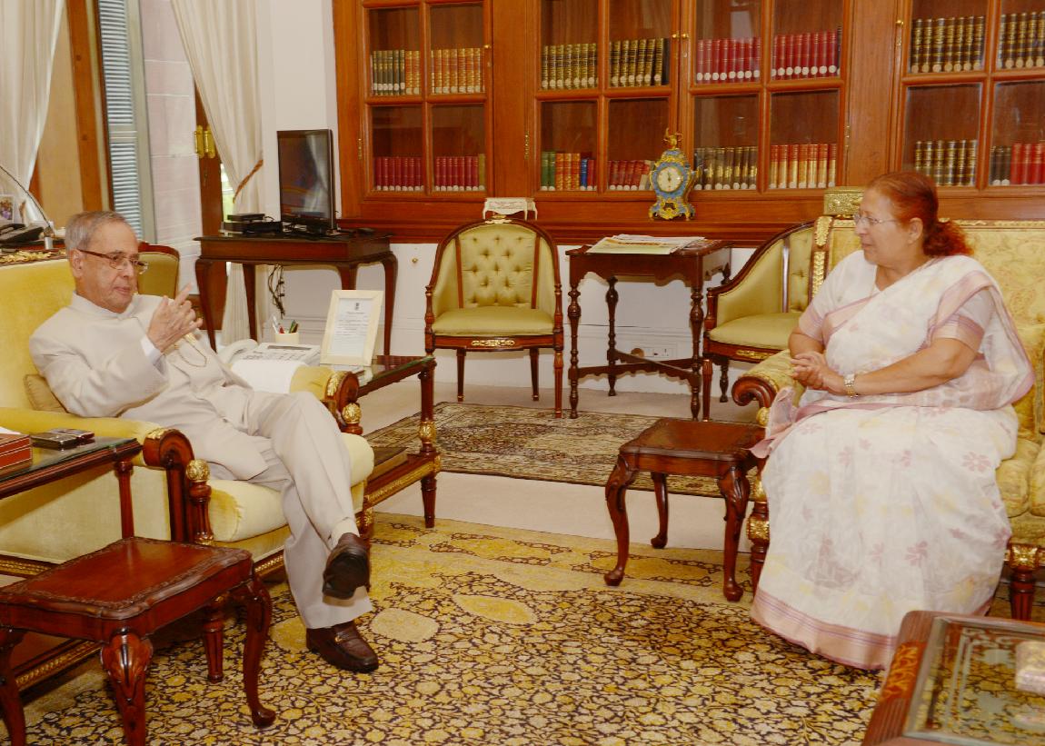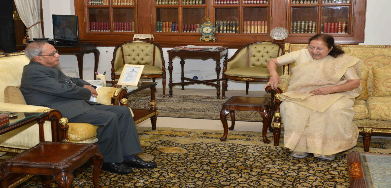 The President of India, Shri Pranab Mukherjee meeting with Smt. Sumitra Mahajan, Speaker, Lok Sabha, at Rashtrapati Bhavan, in New Delhi on August 21, 2015.