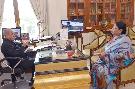 The President of India, Shri Pranab Mukherjee meeting with Smt. Sunanda Singh from Gandhi Ashram, Birbhum, at Rashtrapati Bhavan on September 01, 2016.