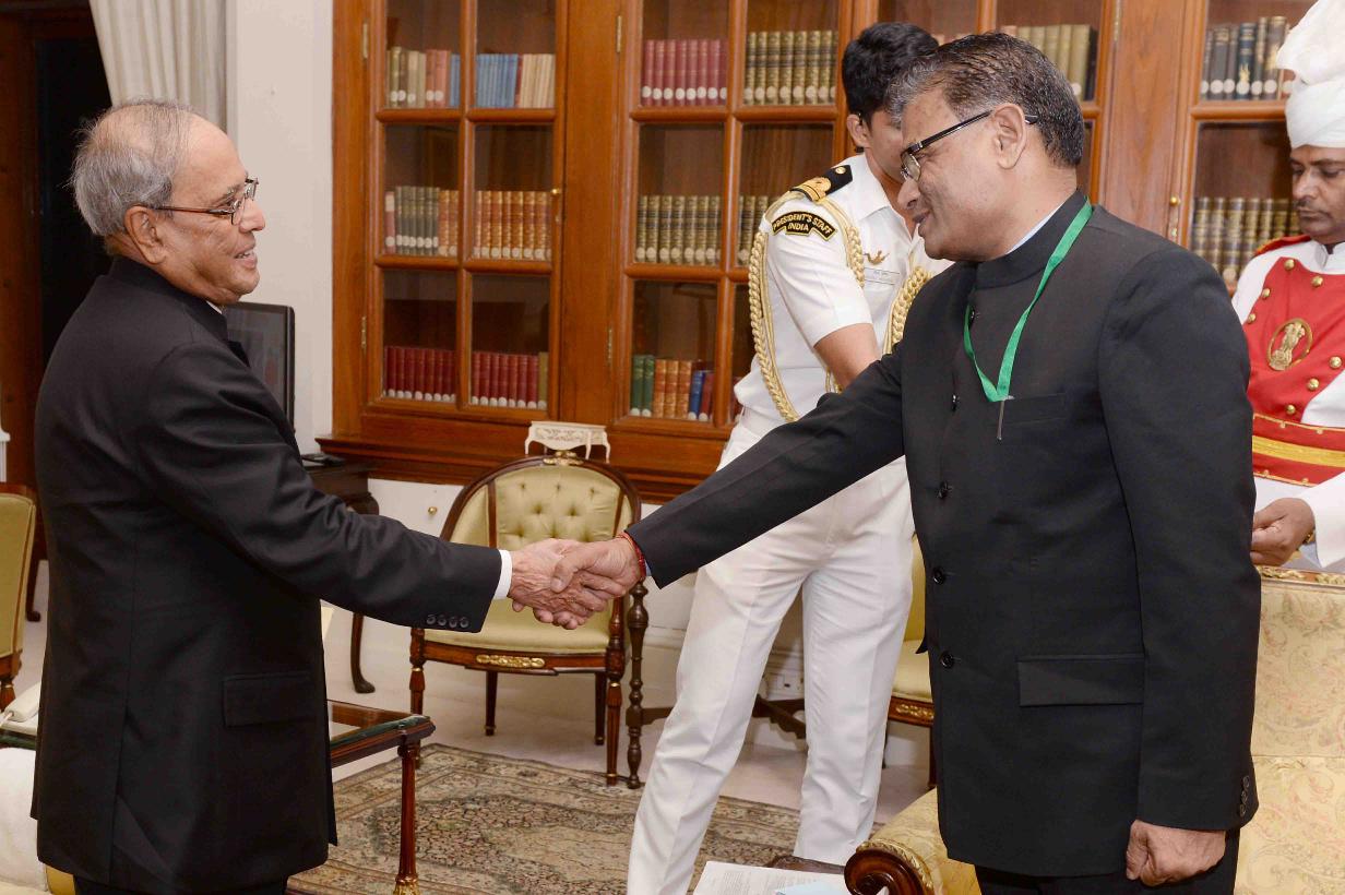 The President of India, Shri Pranab Mukherjee meeting with Shri Suresh Kumar Menon, High Commissioner-designate of India to Malawi, at Rashtrapati Bhavan on August 01, 2016.