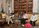 The President of India, Shri Pranab Mukherjee meeting with Shri Utpal Ghosh and Shri D.P. Das from Bridge and Roof Company (India) Limited Executives' Association, Kolkata, at Rashtrapati Bhavan, in New Delhi on July 22, 2015.