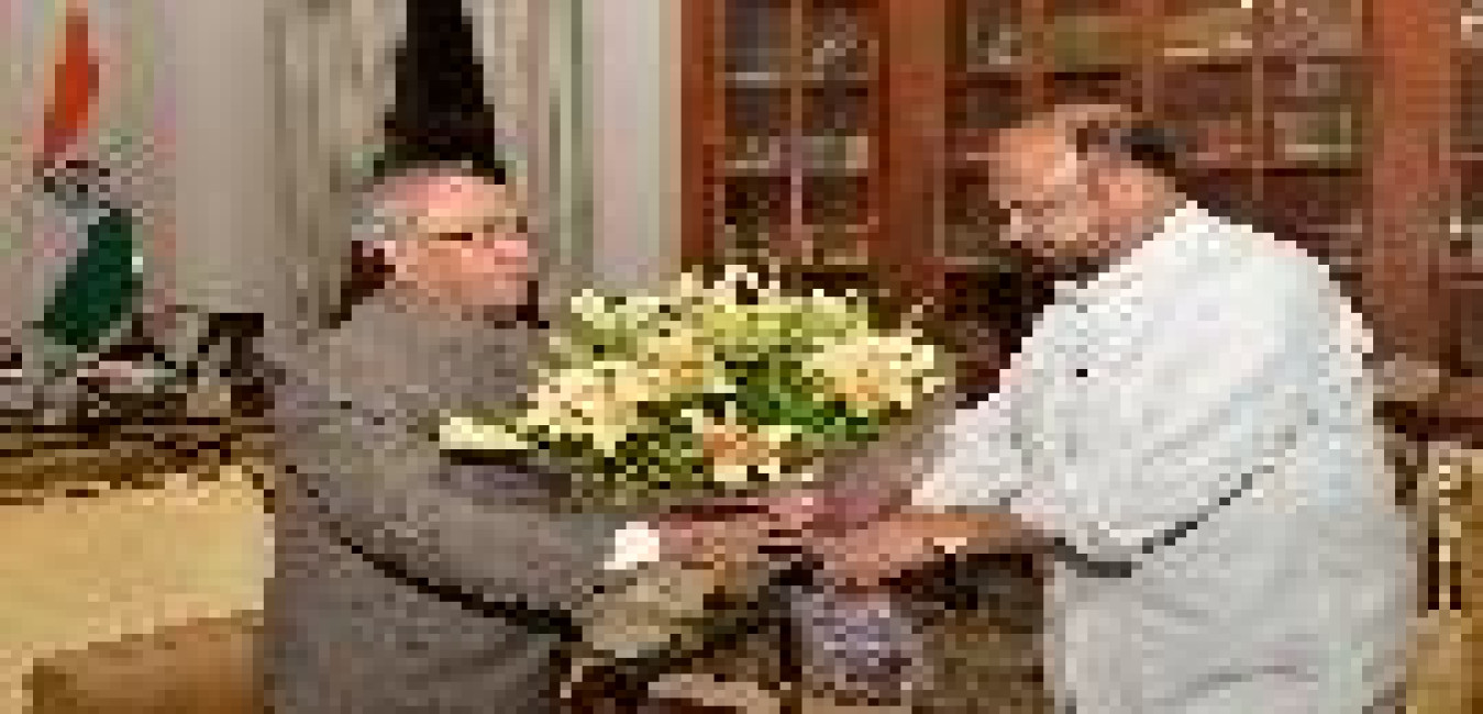 The President of India, Shri Pranab Mukherjee meeting with Shri Prafulla Kumar Mahanta, MLA & former Chief Minister of Assam and others from Asom Aandolan Sangram Manch, at Rashtrapati Bhavan, in New Delhi on September 23, 2015.