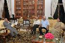 The President of India, Shri Pranab Mukherjee meeting with Shri V.K. Malhotra and Shri C.M. Vasudev, at Rashtrapati Bhavan, in New Delhi on August 25, 2015.