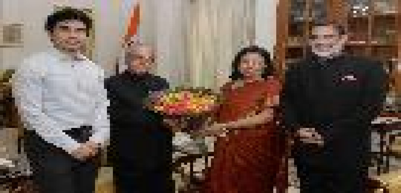 The President of India, Shri Pranab Mukherjee meeting with Smt. & Shri Venu Rajamony, Press Secretary to the President alongwith their son Shri Kartik Venu, during a farewel call, at Rashtrapati Bhavan on May 27, 2017.