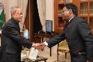 The President of India, Shri Pranab Mukherjee meeting with Shri Vishvas Sapkal, High Commissioner-designate of India to Fiji, at Rashtrapati Bhavan on April 20, 2016.