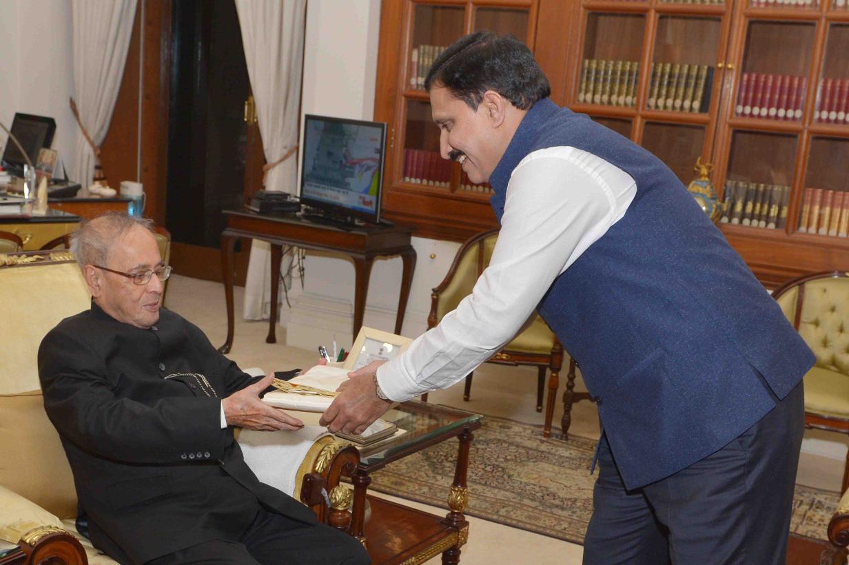 The President of India, Shri Pranab Mukherjee meeting with Shri Y.S. Chowdary, Minister of State for Science & Technology and Earth Sciences, at Rashtrapati Bhavan on April 13, 2016.