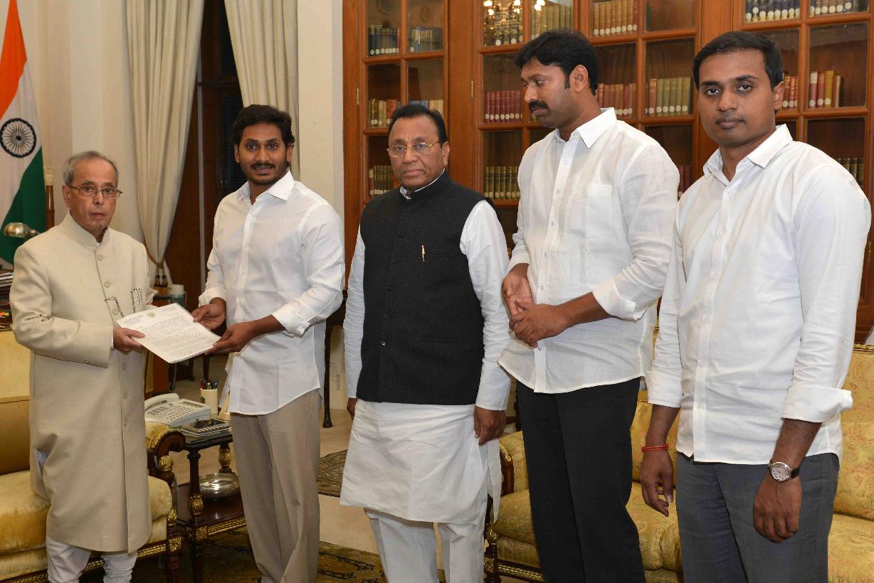 The President of India, Shri Pranab Mukherjee meeting with a delegation of MPs and Leaders of YSR Congress Party led by Shri Y.S. Jagan Mohan Reddy, President of YSR Congress Party and Leader of Opposition, Andhra Pradesh Legislative Assembly, at Rashtrapati Bhavan on February 23, 2016.