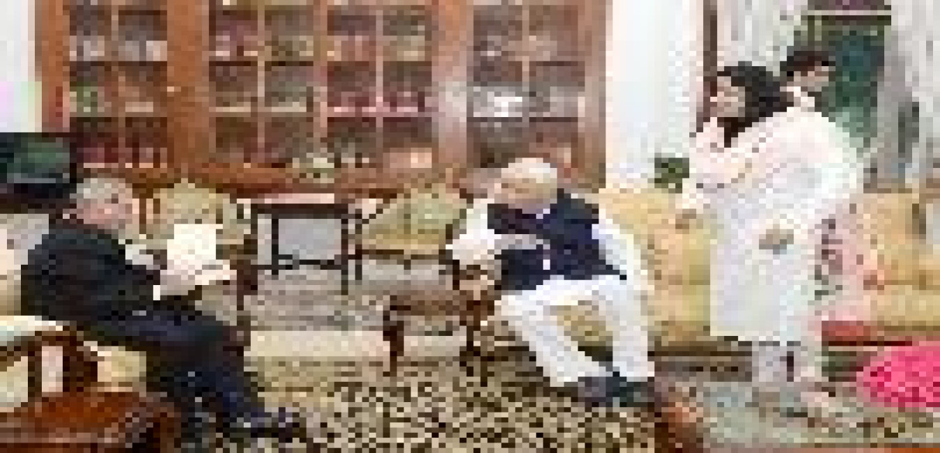 The President of India, Shri Pranab Mukherjee meeting with Shri S.S. Rana, Retd. Director General (Customs), CBEC, Ministry of Finance, at Rashtrapati Bhavan on June 21, 2017.