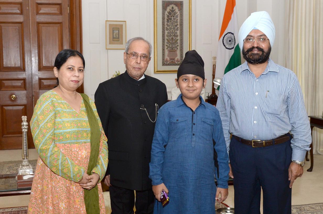 The President of India, Shri Pranab Mukherjee meeting with Shri Gurdip Singh, Commissioner (Apeals), Central Excise alongwith his wife Smt. Harprit Kaur and son Shri Gurjit Singh, at Rashtrapati Bhavan on June 23, 2017.